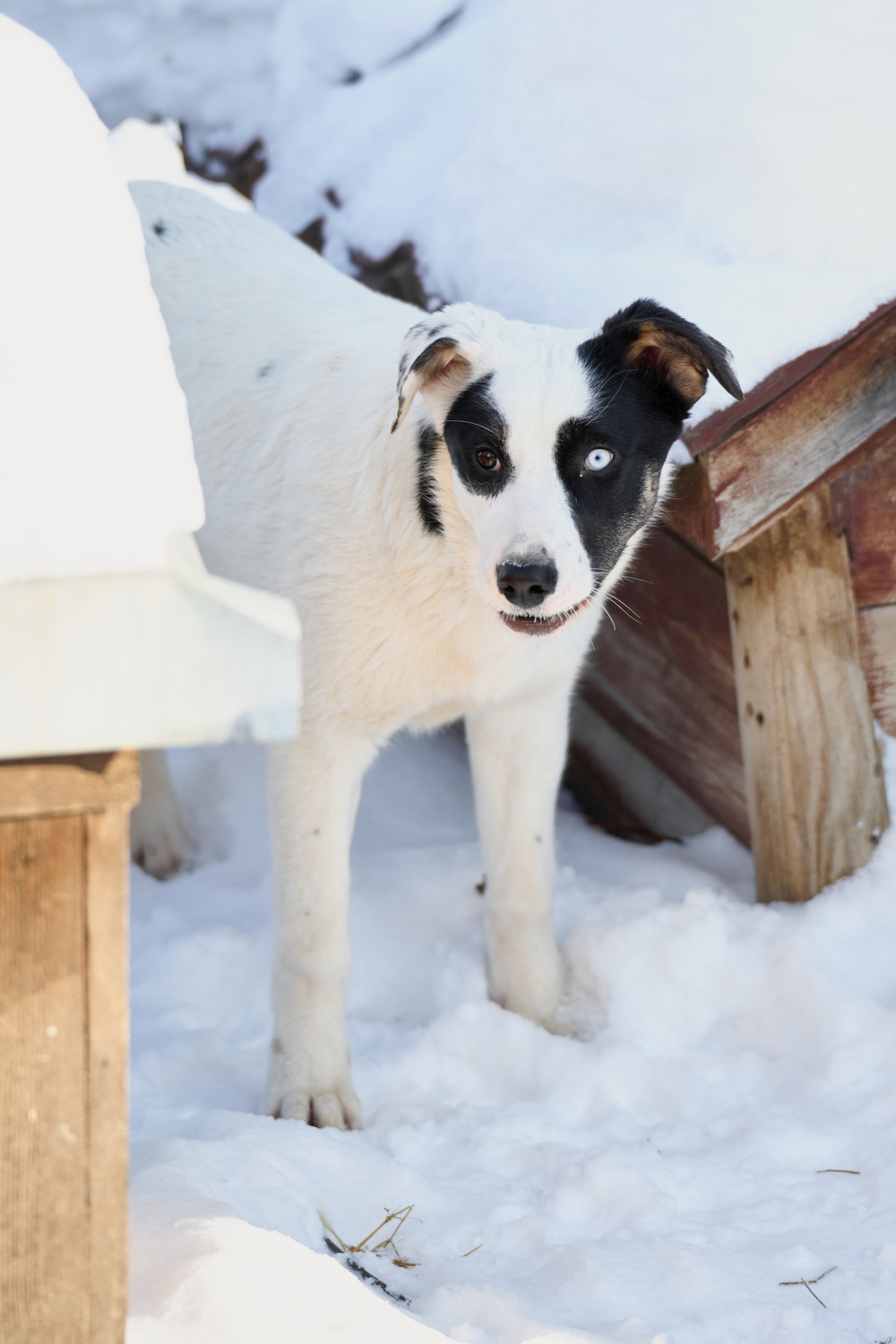 В мае 2025 г. привезли маму Белку и пять ее щенков. Хася и Арчи по окрасу почти совпали, похожи на мамочку, бело-черный окрас, но у Хаси один глазик голубой. Хася изначально трусоватая девчуля, но любопытство делает свое дело, Хася стала вливаться в компанию сверстников. Она ниже колена, крепко сбитая, аппетит прекрасный. Очень красивая мордаха, с разными глазками. Этакая богом помеченная щенуля. Хася очень любит вкусняшки. В толпе своих собратьев она сразу оживает, расслабляется и забывает о страхе. Чувствует поддержку своей семьи и любовь мамы Белки. Мамочка до сих пор контролирует обстановку вокруг своих деток.